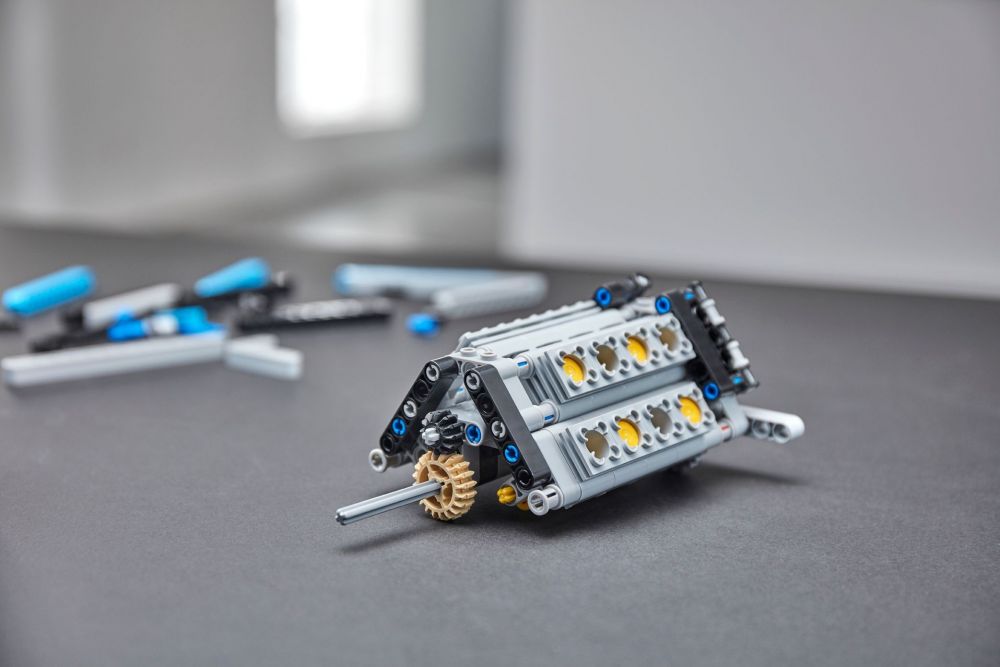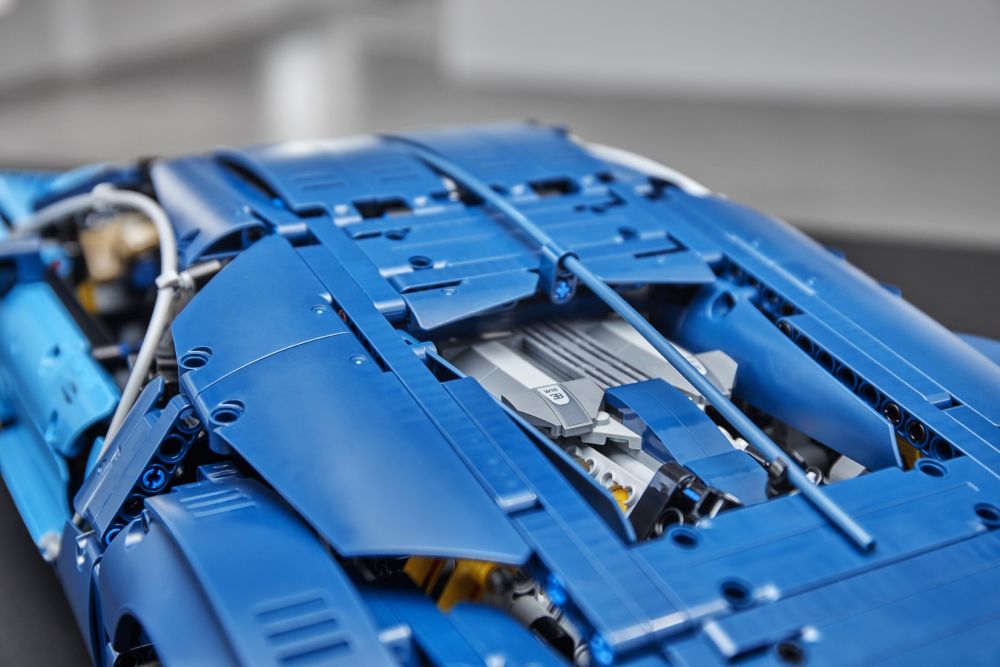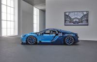A modellnek egyedi sorszáma van, amit a motorháztető alatt találsz meg. Ennek az exkluzív 1:8 arányú, luxus jellemzőkben gazdag LEGO® Bugatti Chiron modellnek aktív hátsó légterelő szárnnyal ellátott áramvonalas karosszériája van. Emellett logóval díszített küllős keréktárcsái, alacsony profilú gumiabroncsai, részletesen kidolgozott féktárcsái is vannak, illetve mozgó dugattyús W16 motor működteti. Klasszikus, Bugattira jellemző kéttónusú kék színvilággal jelenik meg, mely jól tükrözi a márka jellegzetes színét, emellett matricák is várnak rád a csomagban, ezekkel még tovább díszítheted az autót.Nyisd ki az ajtókat, és nézd meg alaposan a kidolgozott vezetőfülkét, melyben felfedezhetsz egy LEGO® Technic 8-fokozatú váltót mozgatható, füles sebességváltóval, és egy kormánykereket is, amelyen a Bugatti emblémáját láthatod! Nyomd meg a csúcssebesség gombot, így átválthatod az aktív hátsó légterelő szárnyat kezelő helyzetből csúcssebesség pozícióba!Emeld fel a motorháztetőt, hogy hozzáférj a kompakt tárolórekeszhez, benne egy stílusos Bugatti utazótáskával! Nézd meg alaposan a mozgó dugattyúkkal felszerelt, részletesen kidolgozott, W16-os motort!